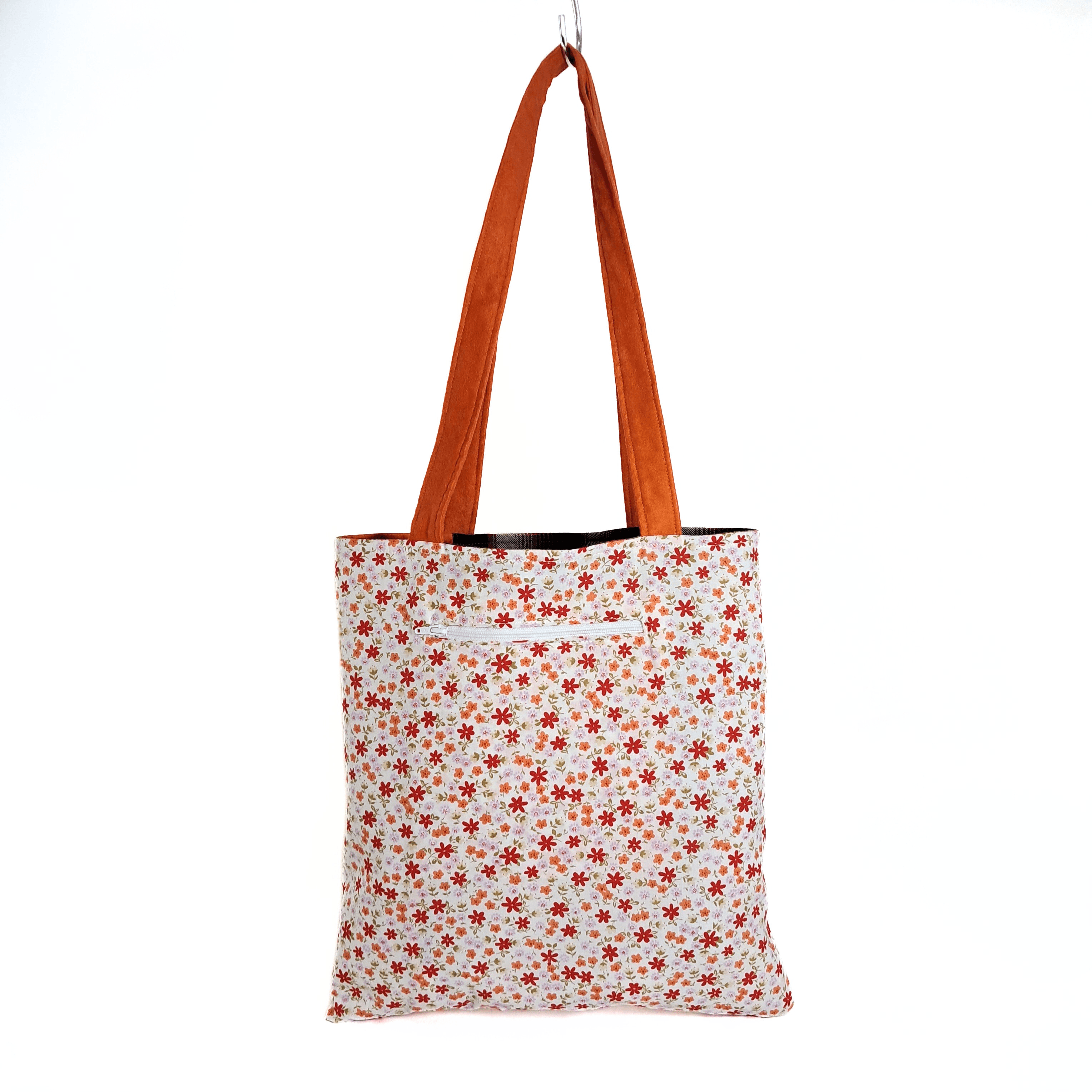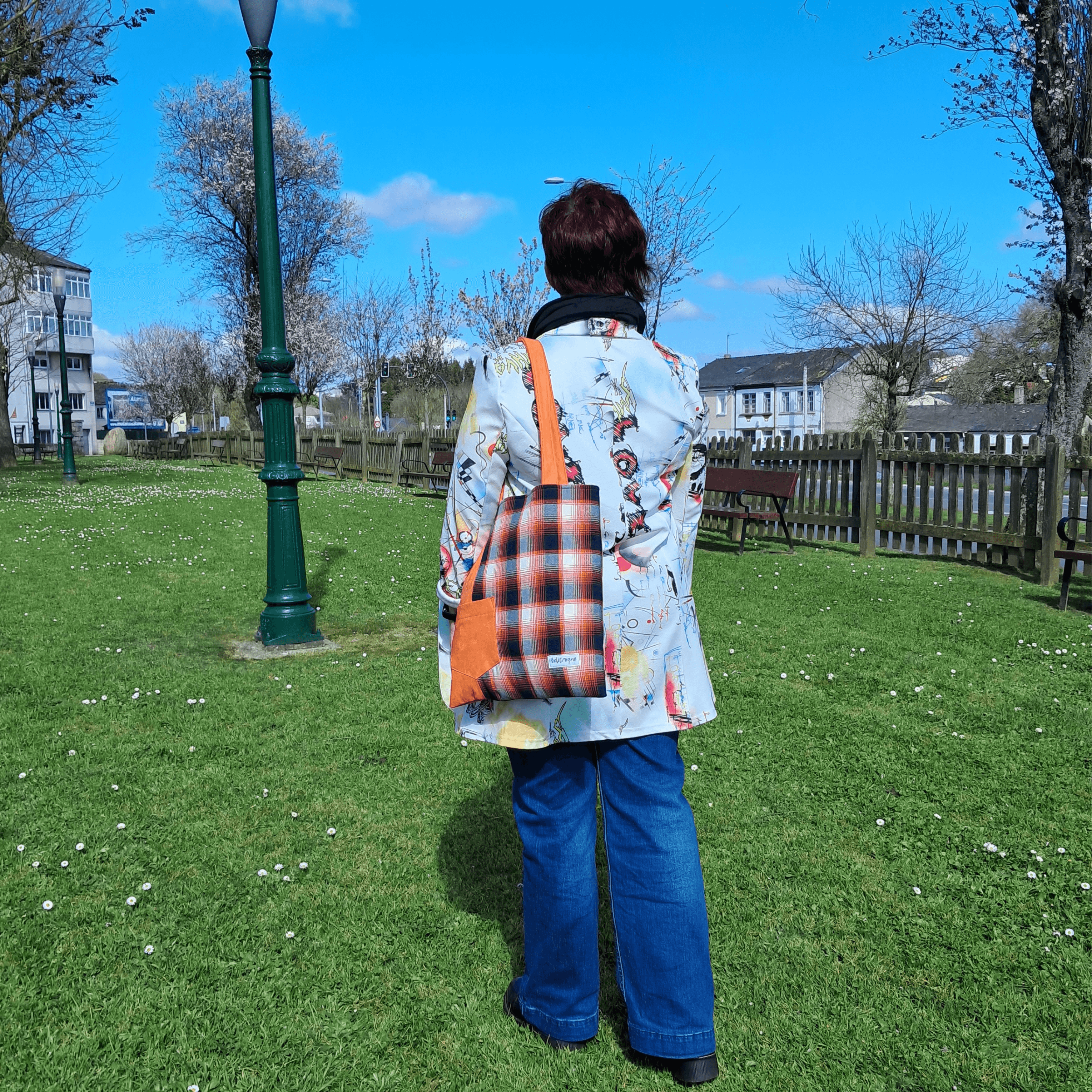 - Detalles: La totebag incluye un bolsillo con cremallera para objetos pequeños, como las llaves, y un bolsillo adicional en el lado de los cuadros. Las asas tienen 62 cm de largo.